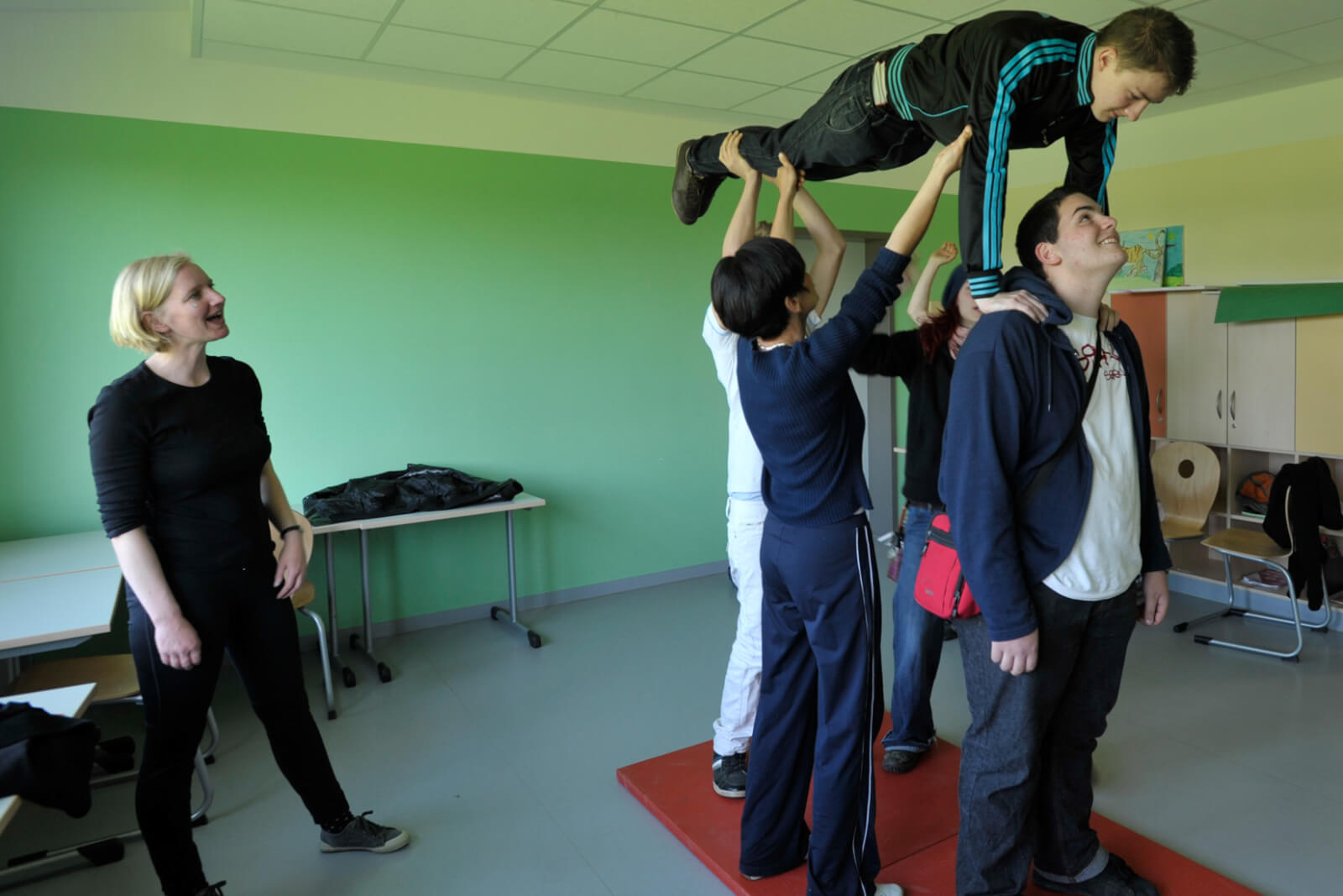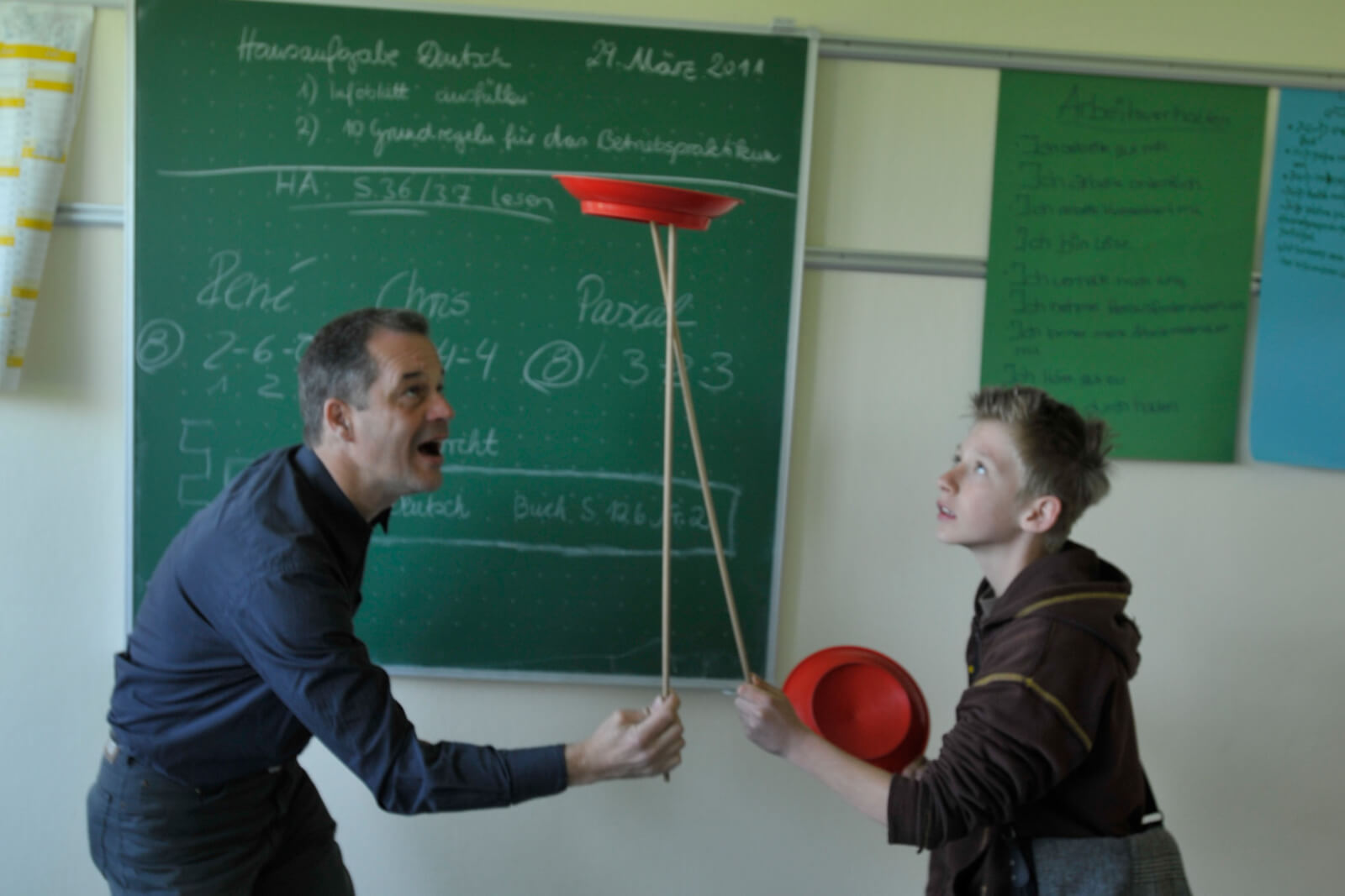 In regelmäßigen Abständen arbeiten Schüler und Lehrer in einem Zirkusprojekt gemeinsam miteinander. In dieser intensiven Woche kommen ungeahnte Talente auf allen Seiten zu Tage.