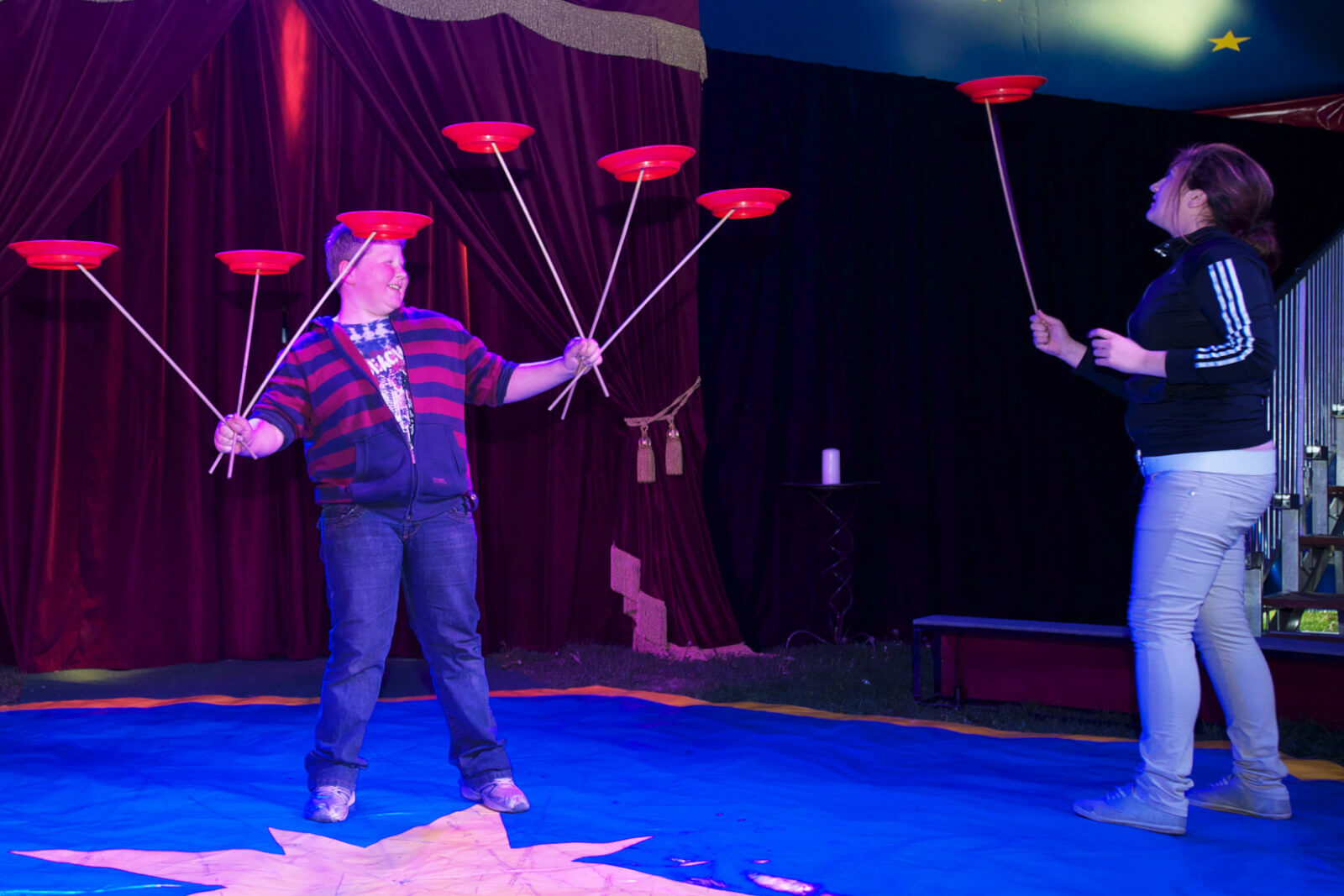 Für manch einen ist das eine größere Herausforderung als der Trick mit dem Diabolo. Jacky betreut die Zirkusgruppe im Adelwald.